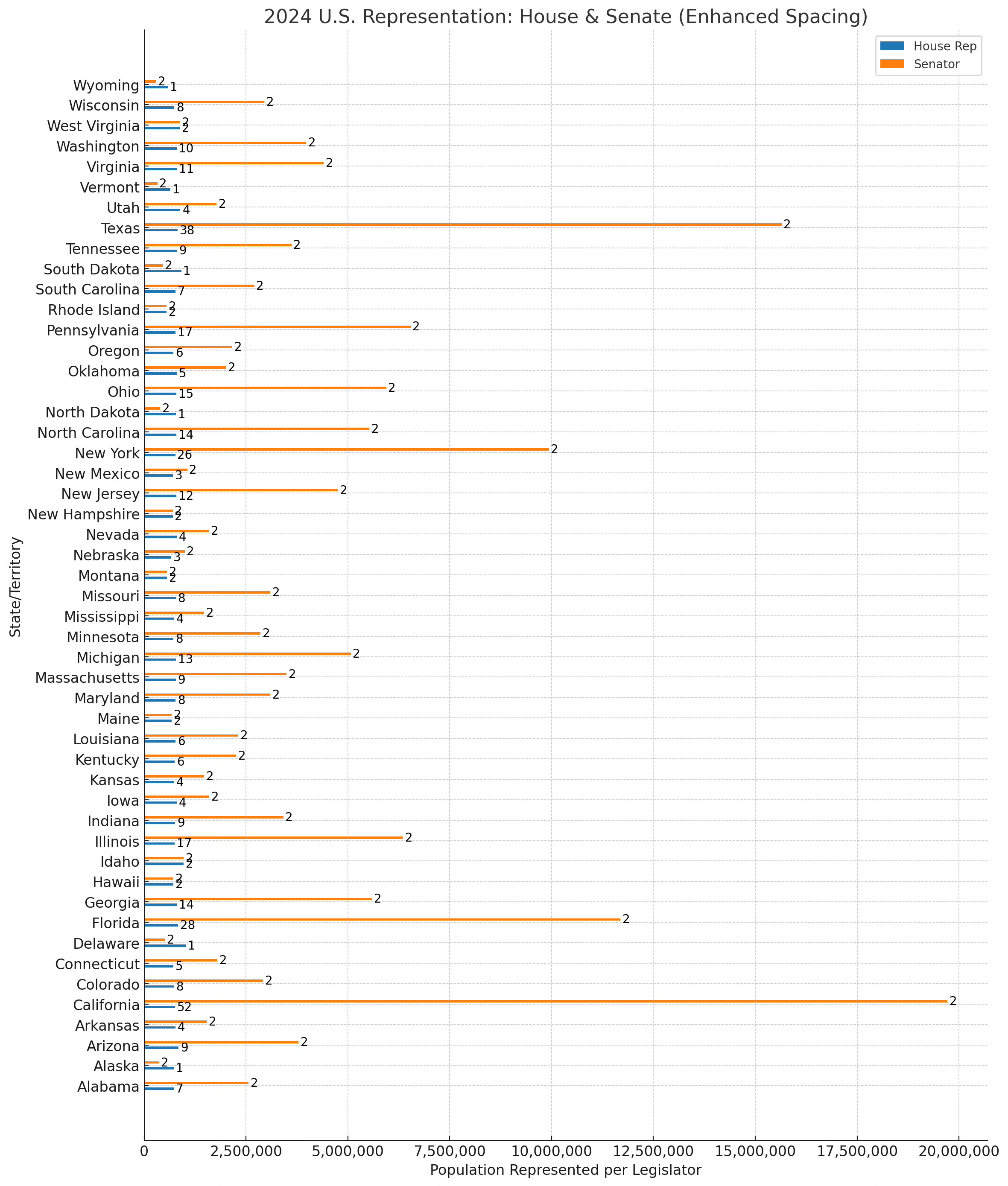 How can 535 individuals in Congress, merely one per hundreds of thousands, or even millions of us truly represent the diverse voices, needs, and priorities of the American people? The math does not add up, regardless of which state one resides.